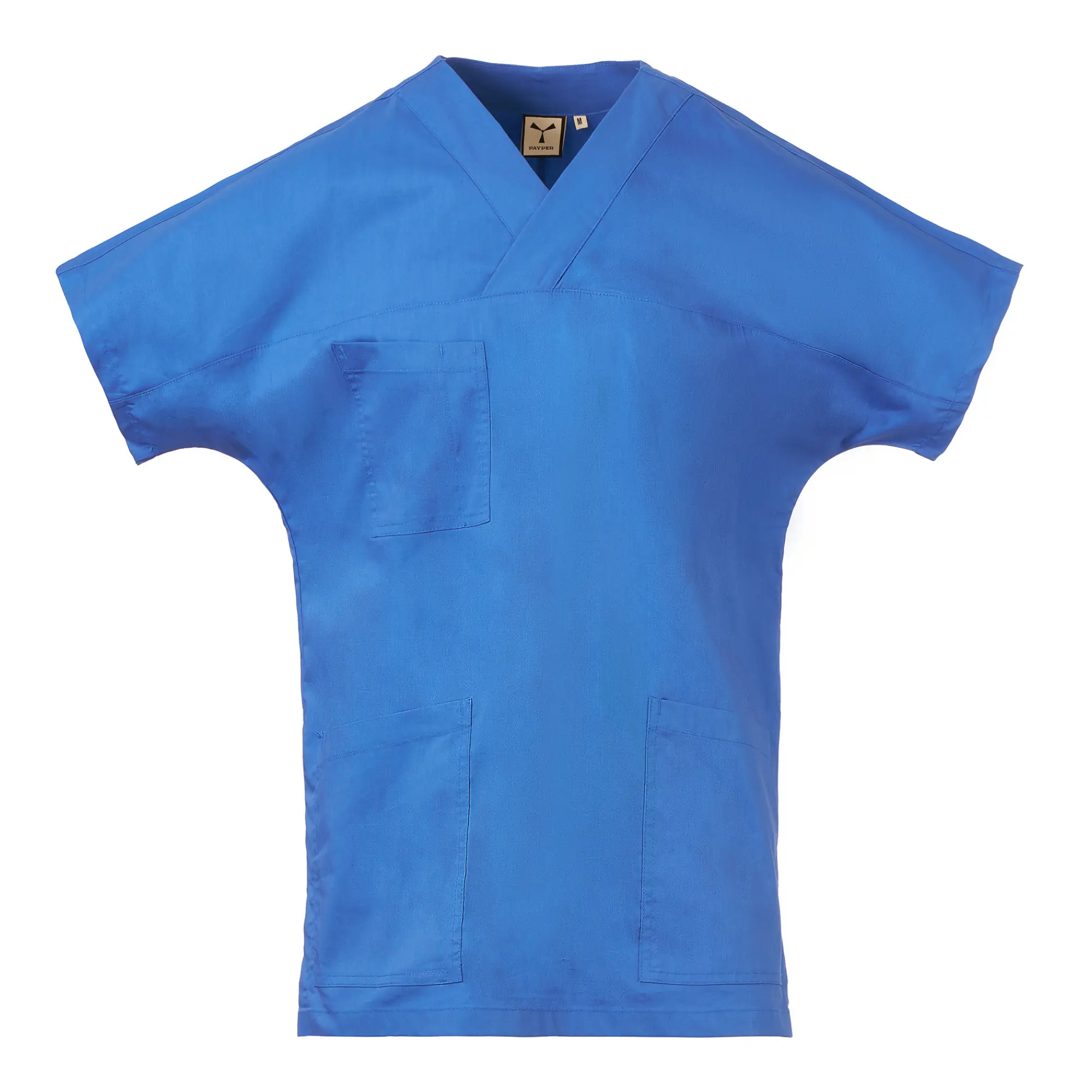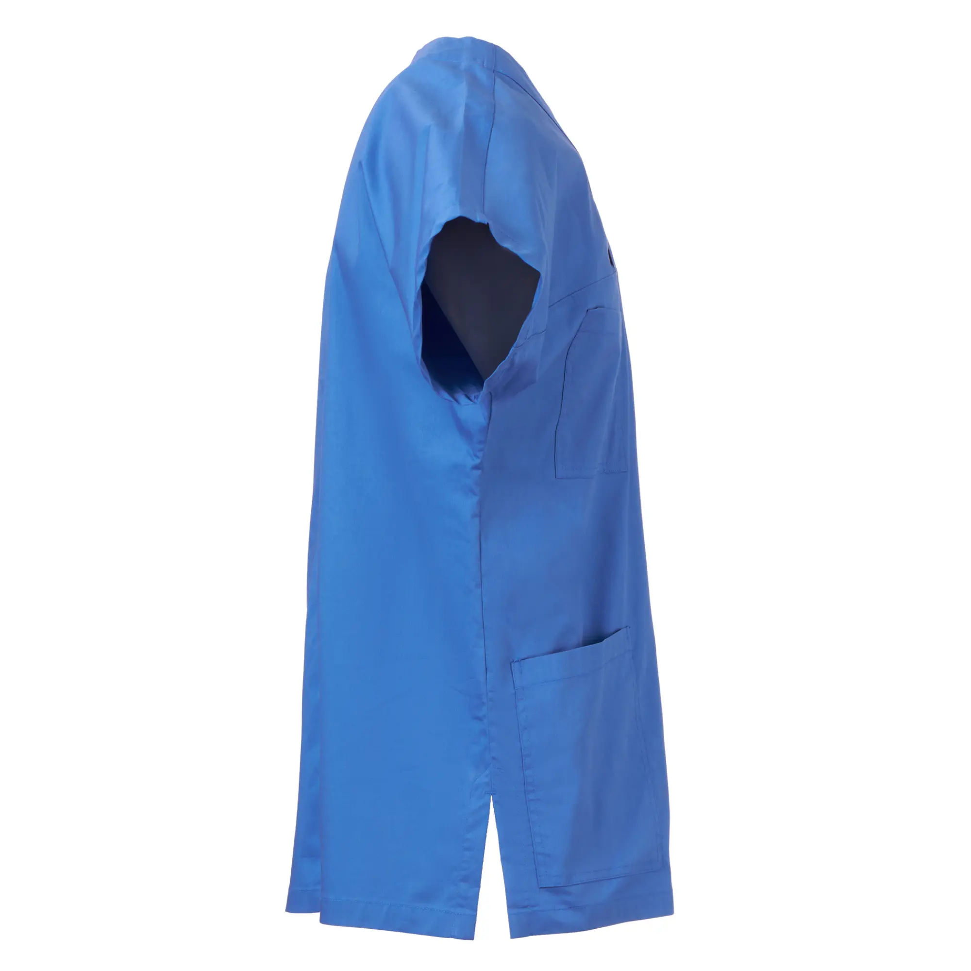Κοντομάνικη στολή, με V γιακά, υλοποιημένη με ποπλίνα βαμβακερή, πολυεστέρα και Lycra® T400®, με εξαιρετικές ιδιότητες ελαστικότητας και διαπνοής. Οριζόντιο άνοιγμα στο μπροστινό μέρος. Τσεπάκι στο στήθος με θήκη για στυλό. Δύο φαρδιές κάτω τσέπες με καπάκι. Πίσω μέρος με κεντρικό άνοιγμα. Πλαϊνά σκισίματα για ευκολία στις κινήσεις.