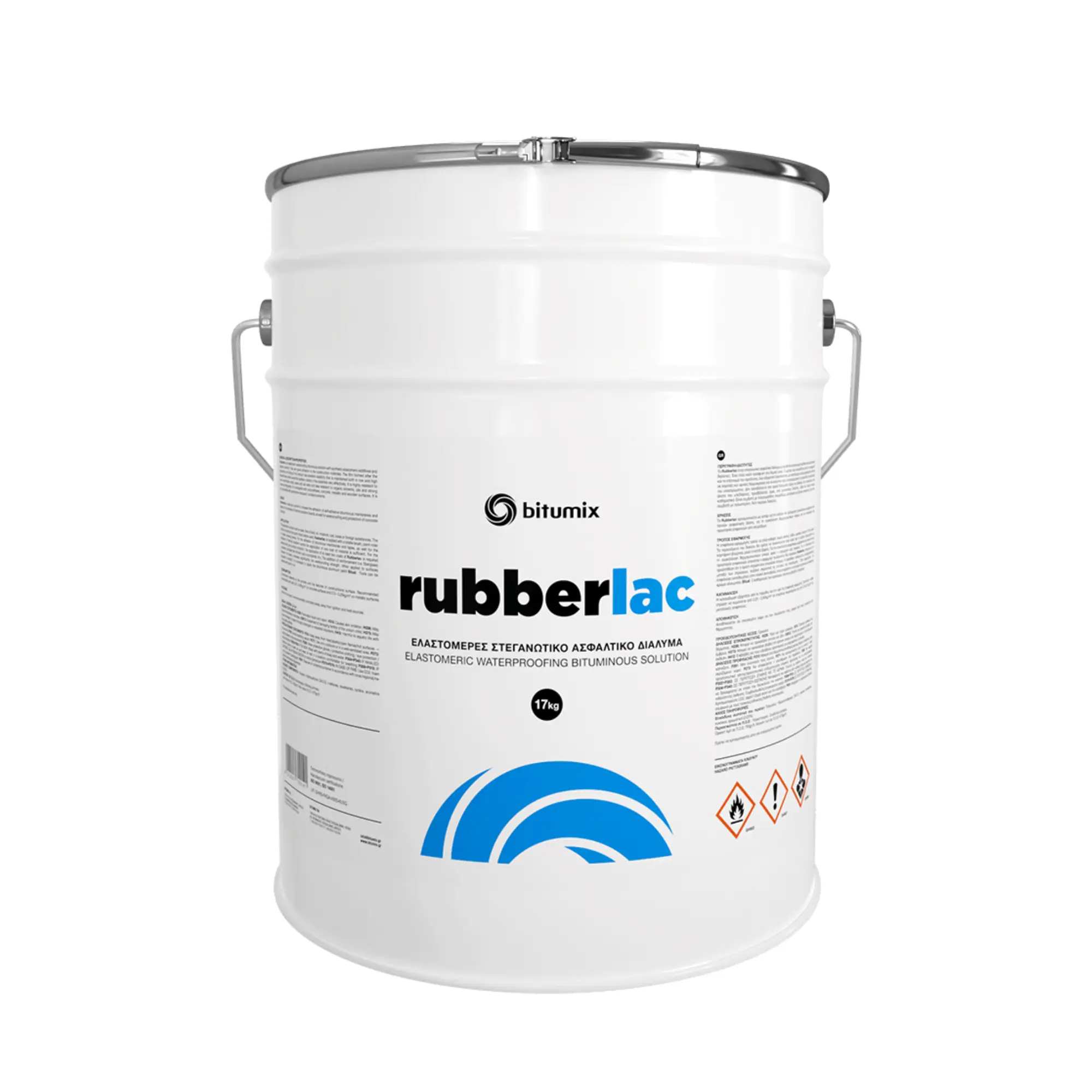Το RUBBERLAC είναι μίγμα τροποποιημένης ασφάλτου με ελαστομερή πρόσθετα και οργανικούς διαλύτες. Λόγω της εξαιρετικής ελαστικότητας του καλύπτει αποτελεσματικά τις τριχοειδείς ρηγματώσεις του υποστρώματος, δημιουργώντας ένα υμένα που συμπεριφέρεται ιδανικά τόσο σε χαμηλές όσο και σε υψηλές θερμοκρασίες. Ο υμένας που σχηματίζεται μετά το στέγνωμα είναι ενιαίος και ελαστικός, απρόσβλητος από αραιά διαλύματα οξέων και βάσεων. Είναι ευαίσθητος όμως στη χρήση πετρελαιοειδών. ΚΑΤΑΝΑΛΩΣΗ: Η κατανάλωση εξαρτάται από το πορώδες και την υφή της επιφάνειας εφαρµογής. Προτείνεται η κάθε στρώση να κυμαίνεται από 0,25 – 0,40kg/m² σε επιφάνεια σκυροδέματος και από 0,15 – 0,25kg/m² σε μεταλλικές επιφάνειες.